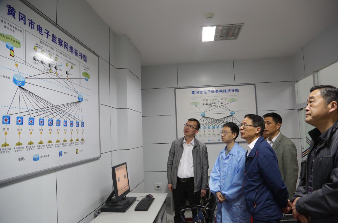会前,与会人员集中参观了电子政务外网中心机房、考察黄冈新一代“云计算”中心。